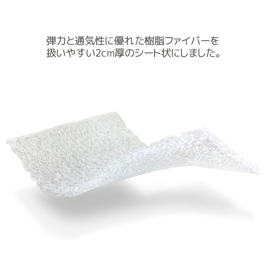 90%以上が空気層でできているファイバー素材は通気性に優れ、使用時のムレを軽減。