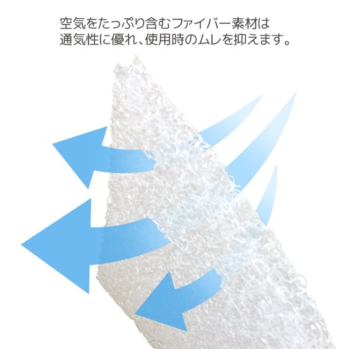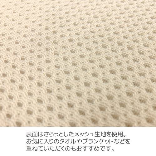 空気をたっぷり含むファイバー素材は通気性が良く、さらさらとしたメッシュ素材のカバー生地と合わせてムレを軽減。